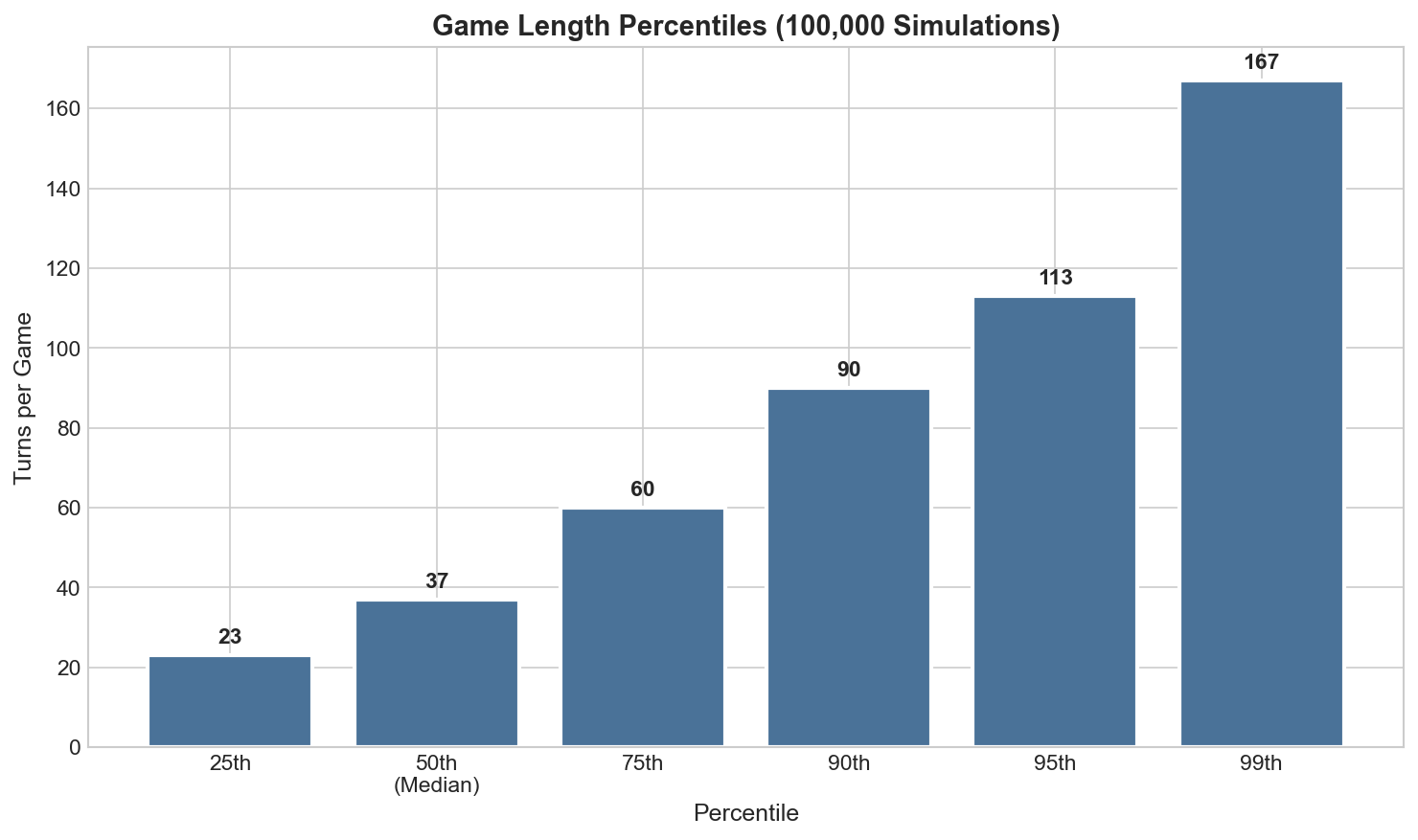 | 95th | 113 | Long games (5% tail) |