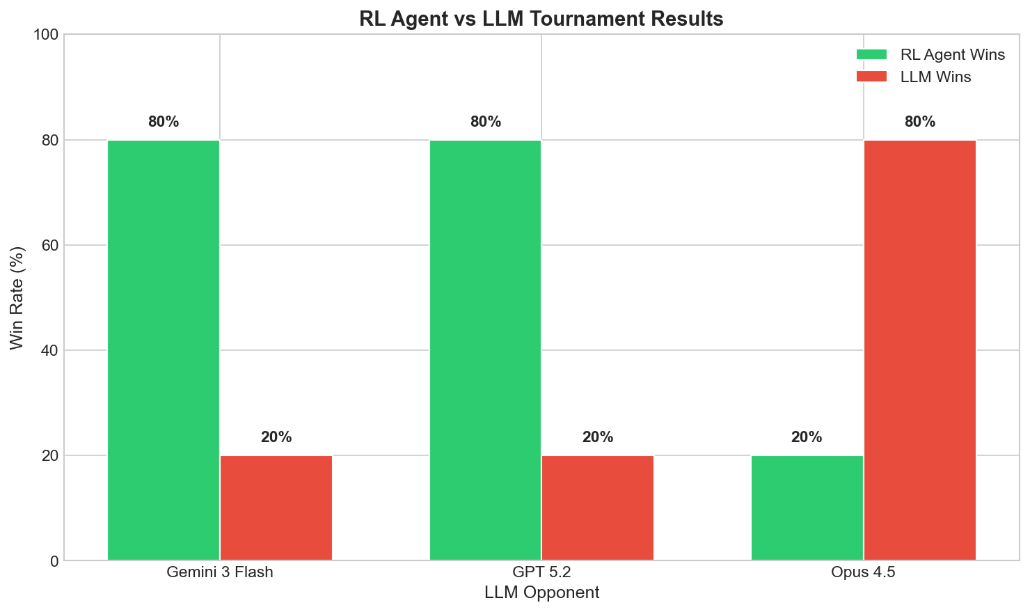 | Opponent | RL wins | LLM wins | RL win rate |