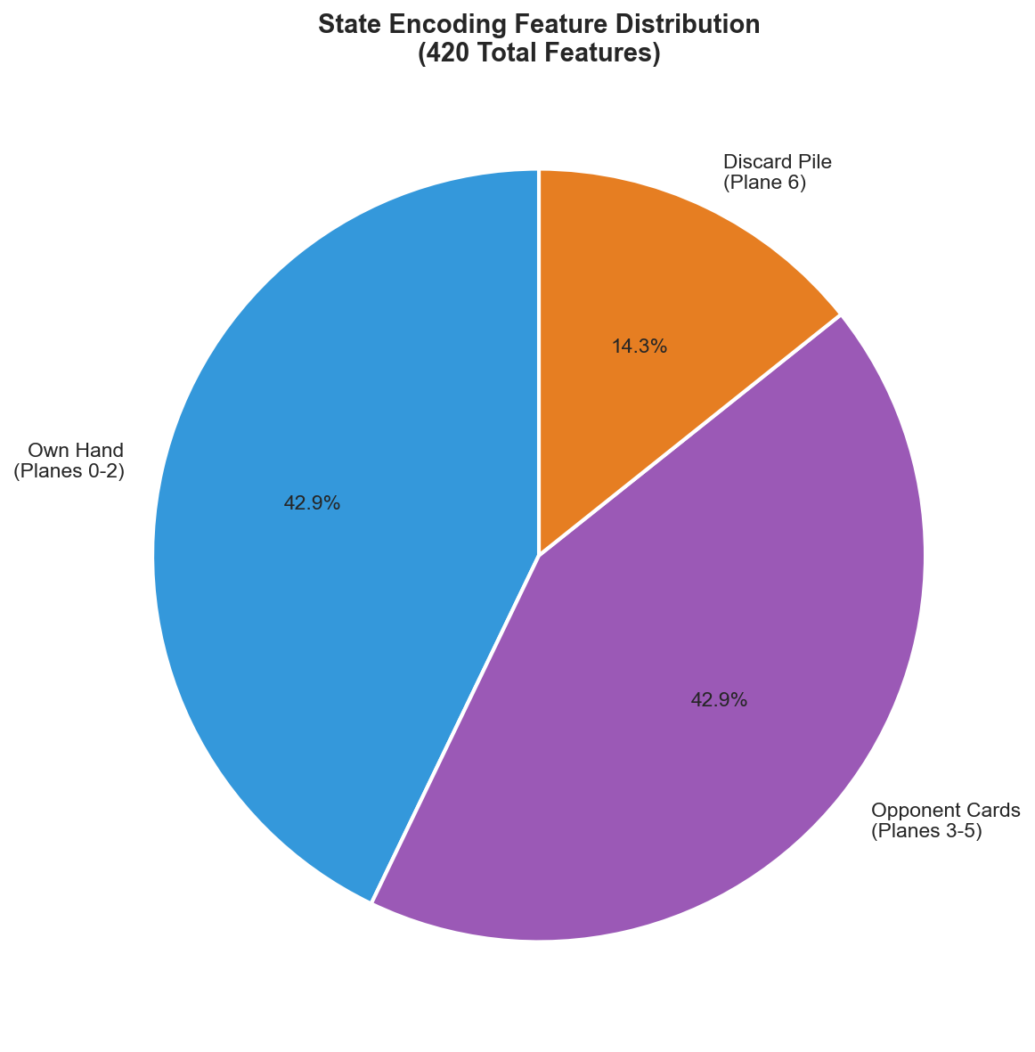 We encode the game state as a 420-dimensional feature vector structured as 7 planes of 60 features each (4 colors \(\times\) 15 card types). This representation is designed to be (i) fixed-dimensional, (ii) permutation-invariant with respect to hand order, and (iii) directly aligned with Uno’s public and private information.